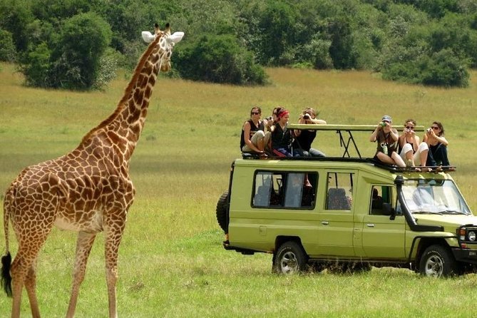 A day trip to Arusha National Park offers game drives, walking safaris, and canoeing, with views of Mount Meru, lush forests, crater lakes, and wildlife like giraffes, buffaloes, flamingos, and colobus monkeys.