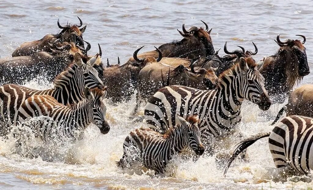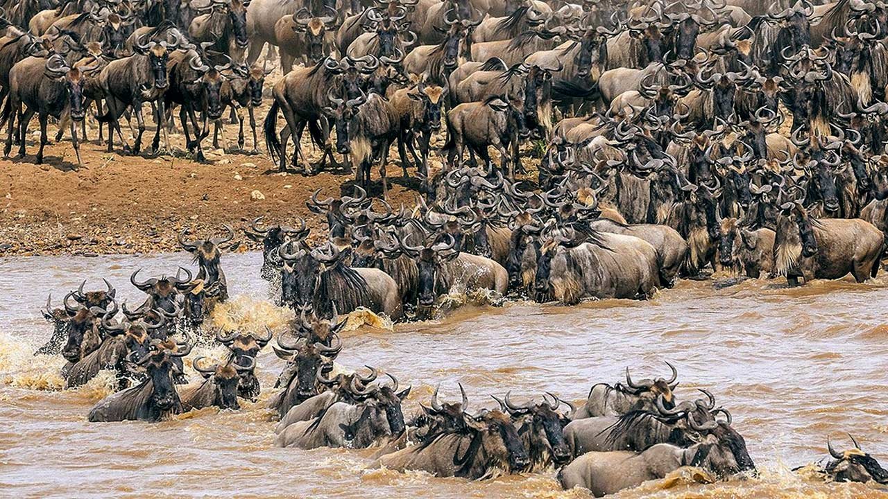 The Great Migration in Tanzania showcases millions of wildebeest, zebras, and gazelles moving across the Serengeti, crossing rivers, facing predators, and following seasonal rains, creating one of nature’s most breathtaking wildlife spectacles.